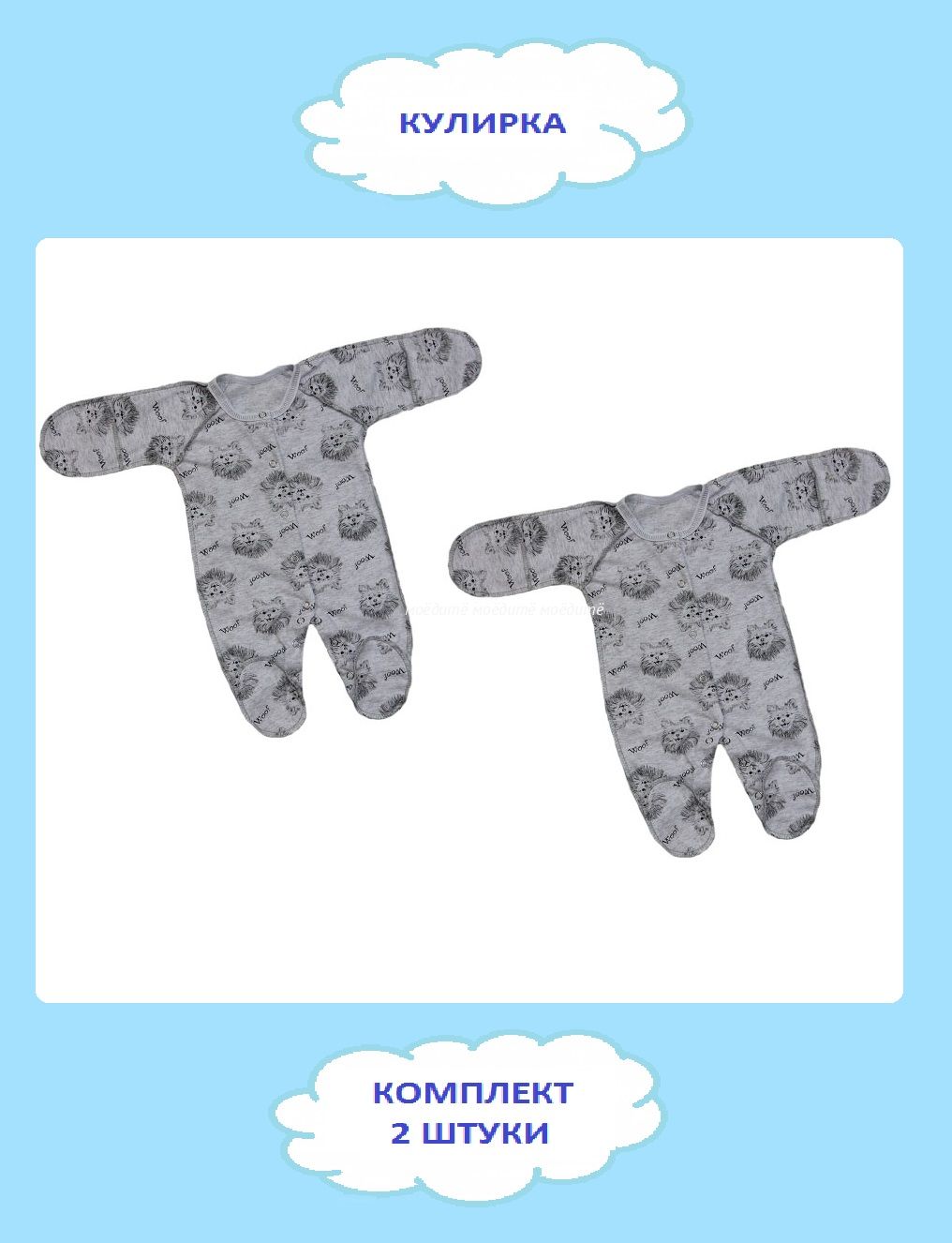 "МоёДитё" комбинезон со швами наружу "Гардения" КК007 "Собачки" серый в Барнауле